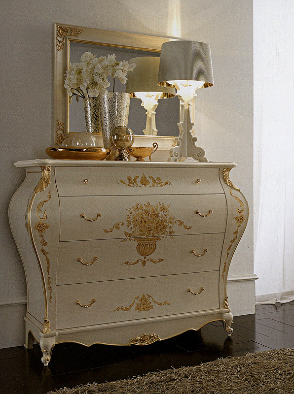 Комод з 4 видвижними ящиками. Декорирован резьбой і росписю. Можливі інші варіанти відділки.Характеристики