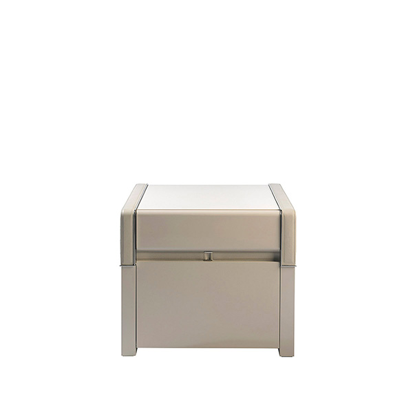 Нічний столик MASTER з 2 висувними ящиками, як і вся колекція, може похвалитися елегантними та похмурими лініями. Глянцеві лакові поверхні в ідеальному поєднанні з гравірованою шкірою та сталлю. Можна поєднати п’ять різних кольорів лаку з 5 різними кольорами гравірованої шкіриХарактеристики