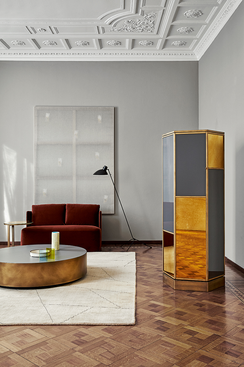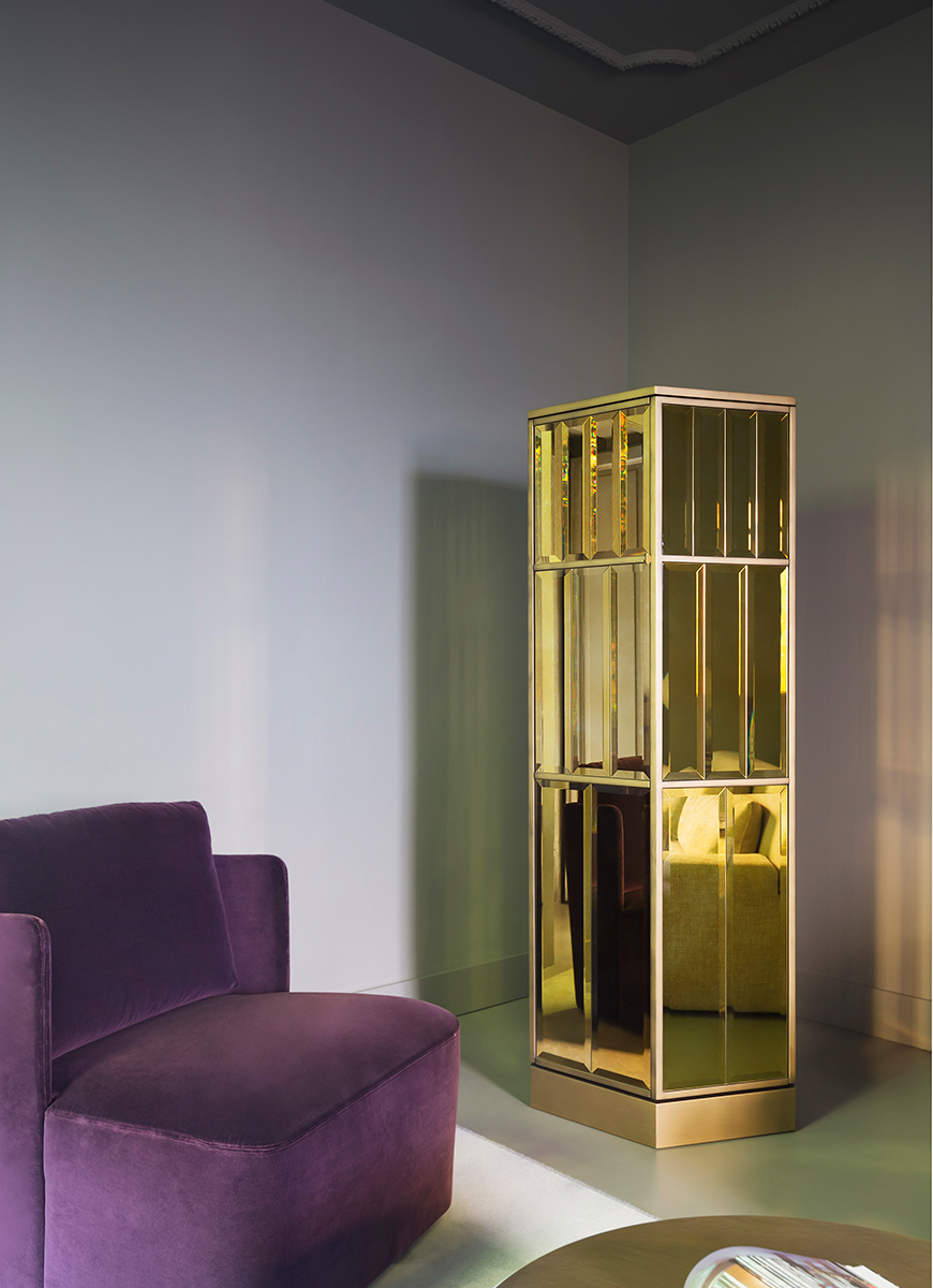 Шестикутна одиниця Людвіг - сучасна інтерпретація кабінету Мерідіані. Ці колони характеризуються широкою ємністю для зберігання і можуть використовуватися як самостійно, так і навіть в парі для формування приміщень. Широкий асортимент оздоблення Людвіга може призвести до суворого та однотонного об’єкта, як і до пишного предмета інтер’єру, особливо з бронзовим скошеним дзеркальним покриттям із діамантами.Характеристики