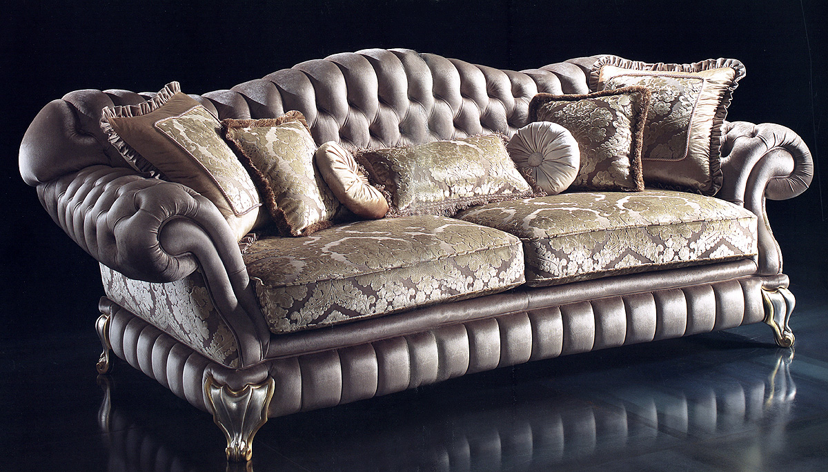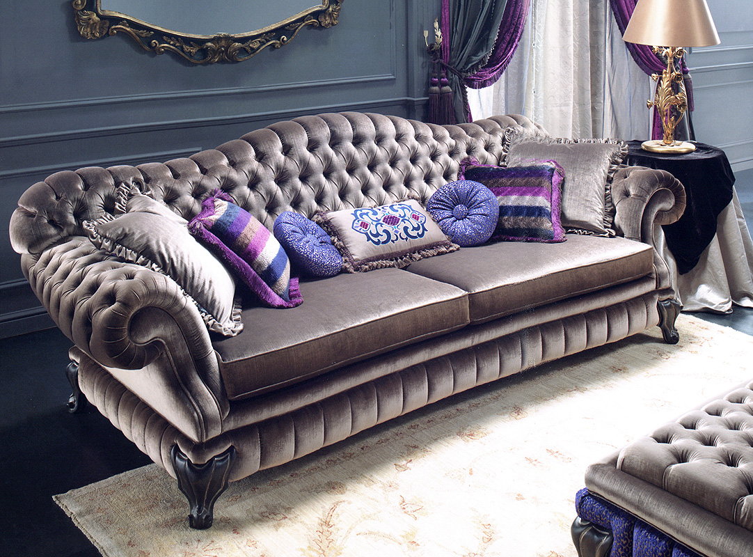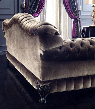 Двомісний диван. Спинка і підлокітники оббиті в техніці Капітонов. Можливі інші варіанти обробки і оббивки, в тому числі в тканини клієнта.Характеристики