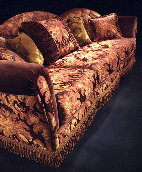 Тримісний диван. Спинка з боків оббита в техніці Капітонов. Можливий варіант розкладного дивана. Можливі інші варіанти оббивки, в тому числі в тканини клієнта.Характеристики