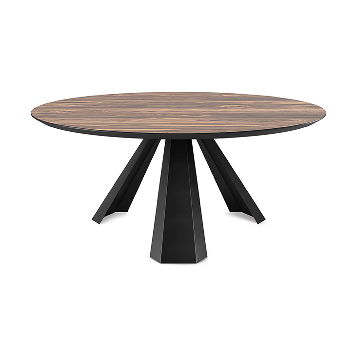 Стіл з основою з титану (GFM11), бронзи (GFM18), графіту (GFM69), білого (GFM71) або чорного (GFM73) тиснення з лакованої сталі. Верх 15 мм з білого або графітового фарбованого прозорого матового скла або білого каррарського (BC), мармуру Emperador (EMP), горіха каналетто (NC) або обпаленого дуба (RB). Мармурові вершини складаються з чотирьох часточок. Додатковий центральний поворотний лоток Lazy Susan.Характеристики