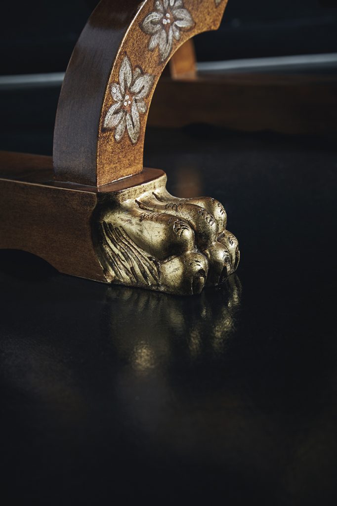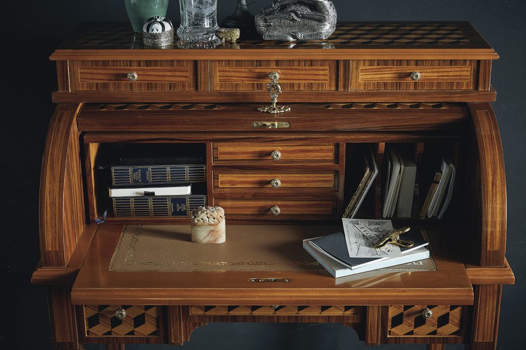Eclettico представляє простір, відведений під домашній офіс з класичним елегантним стилем. Поряд з вишуканим секретером з делікатною інкрустацією, в ньому представлено крісло Данте, прикрашене декором і вставками з сусального золота. Його вічно актуальна краса і суворі обриси прекрасно підходять до професійної студії.Характеристики