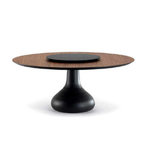 Стіл з основою з графіту (GFM69) або білого кольору (GFM71) з тисненим лакованим алюмінієм. Зверху - горіх Каналетто (NC) або обпалений дуб (RB). Додатковий центральний поворотний лоток Lazy Susan.Характеристики