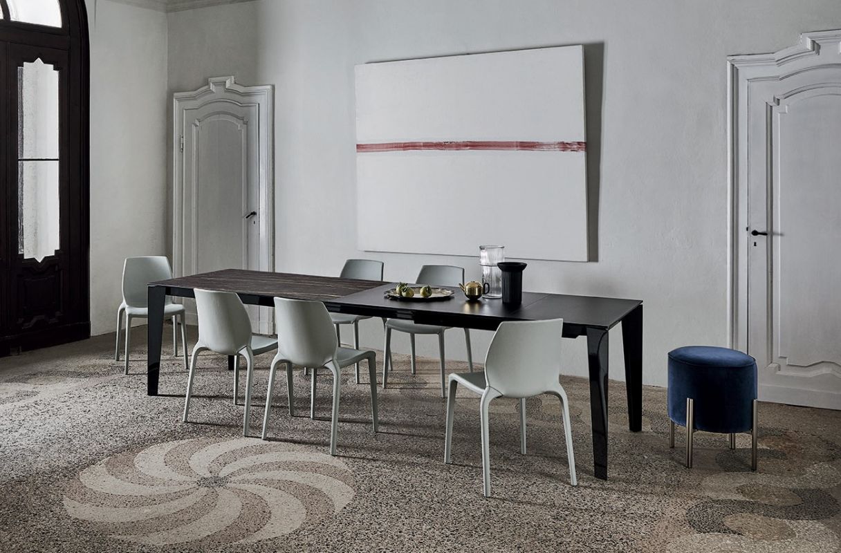 Стіл з приставками та лакованим металевим каркасом. Меламіновий верх, вінір, глянцеве скло, оксамитове матове лаковане скло проти подряпин, SuperCeramic або SuperMarbleХарактеристики