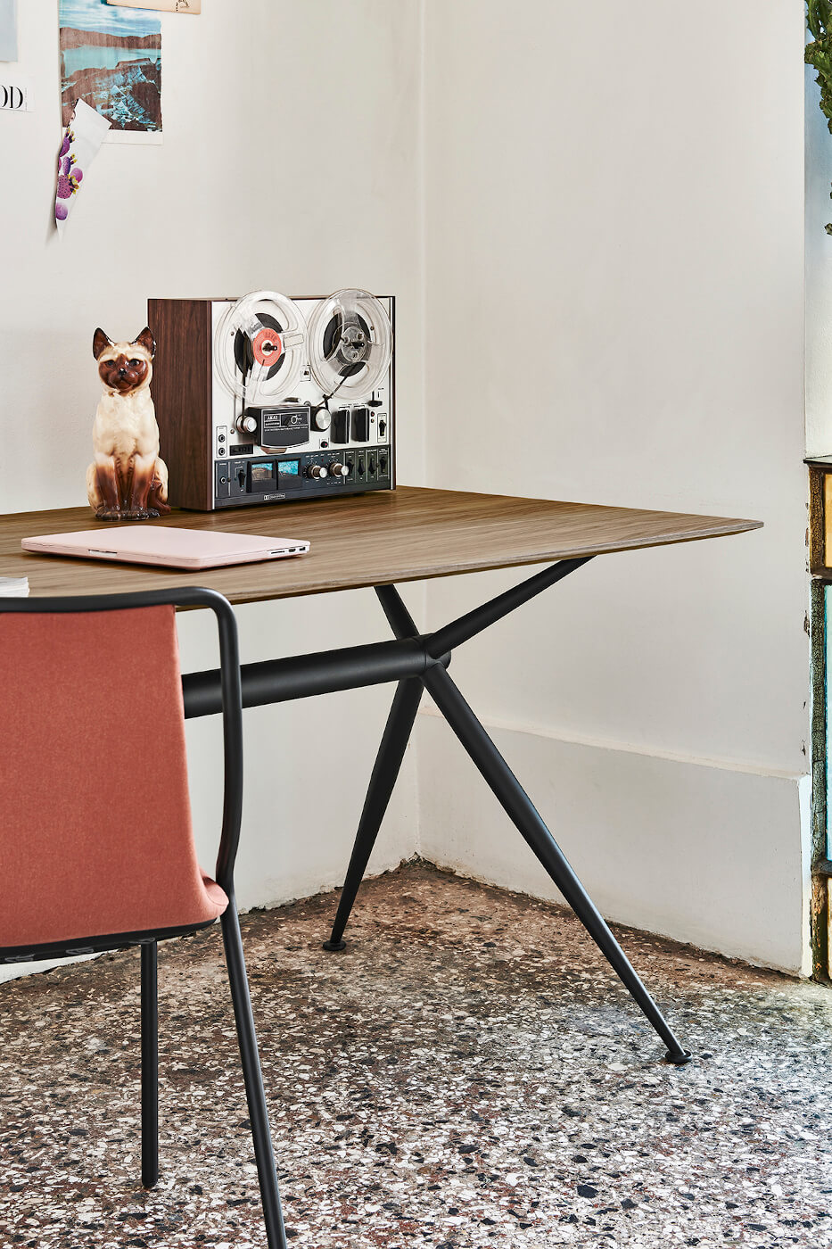 Фіксований стіл Brioso з лакованої або хромованої сталі. Зверху в скло або дерево.Характеристики