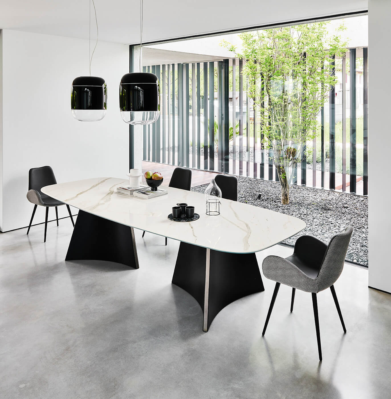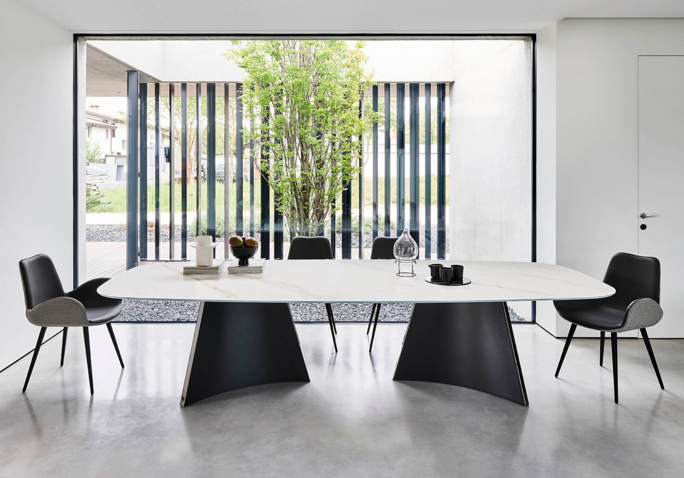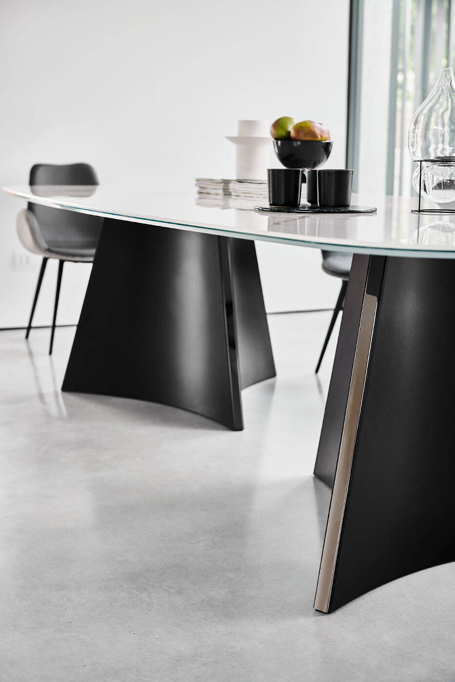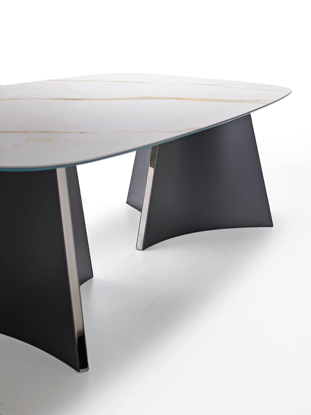 Нерухомий стіл зі сталевою основою та кристалокерамічною стільницею.Характеристики