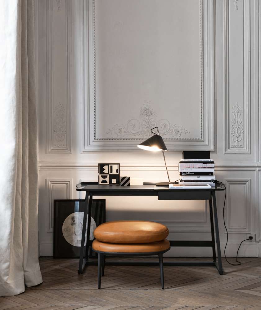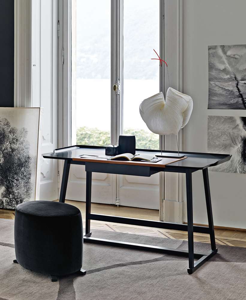 Стіл має похилі ніжки, які є лейтмотивом всієї колекції, і невелику шухлядку. Благородні пропорції та витончені деталі, стільниця із закругленими краями роблять цей стіл винятково вишуканим предметом меблів. Його можна розмістити за диваном або використовувати як поверхню для розташування декоративних елементів, а не просто як письмовий стіл.Характеристики