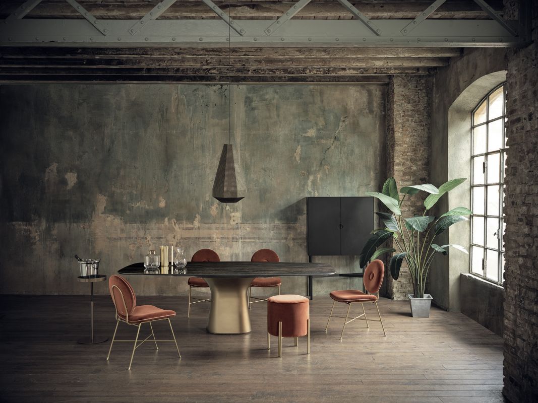 Фіксація столу або з розширеннями та з бетонною основою. Верх у деревині шпону, шпону з твердим краєм Дерево, масив дерева, спадковий горіх Тверда деревина, глянцеве скло, оксамитове матове лаковане скло проти подряпин або SuperMarbleХарактеристики