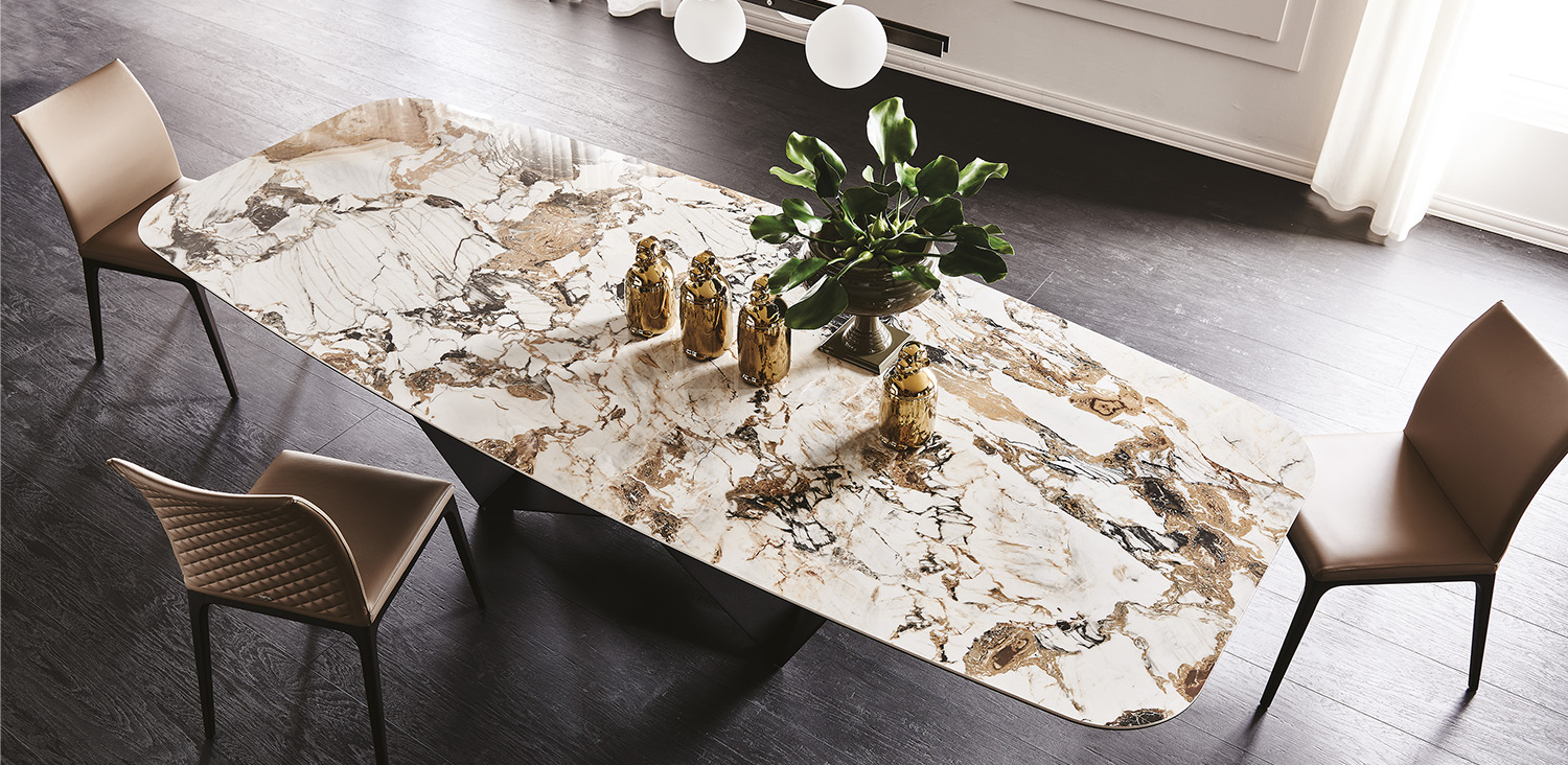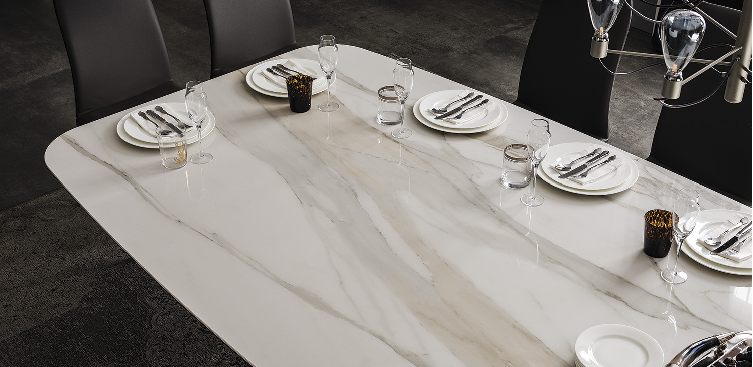 Стіл Skorpio Keramik - модельна варіація столу зі сталевою базою з лаковим покриттям, яка має стільницю з кераміки, оброблену під мармур. Стіл Skorpio Keramik виготовляється на каркасі зі сталі, який формує складний візерунок ніжок і покривається спеціальним лаком. Стільниця керамічна, яка профілюється до овальної форми й обробляється для створення глянсової поверхні. Ви не тільки можете вибрати вид обробки бази й матеріал для стільниці, а й розмір Вашого столу. Стіл Skorpio Keramik ідеально підійде до Вашого сучасного інтер'єра. Модельний ряд столів Skorpio Keramik представлений в кількох варіантах стільниць прямокутної форми з округлими краями та без. Дизайнер: Паоло Каттелана та Андреа Лукателло.Характеристики