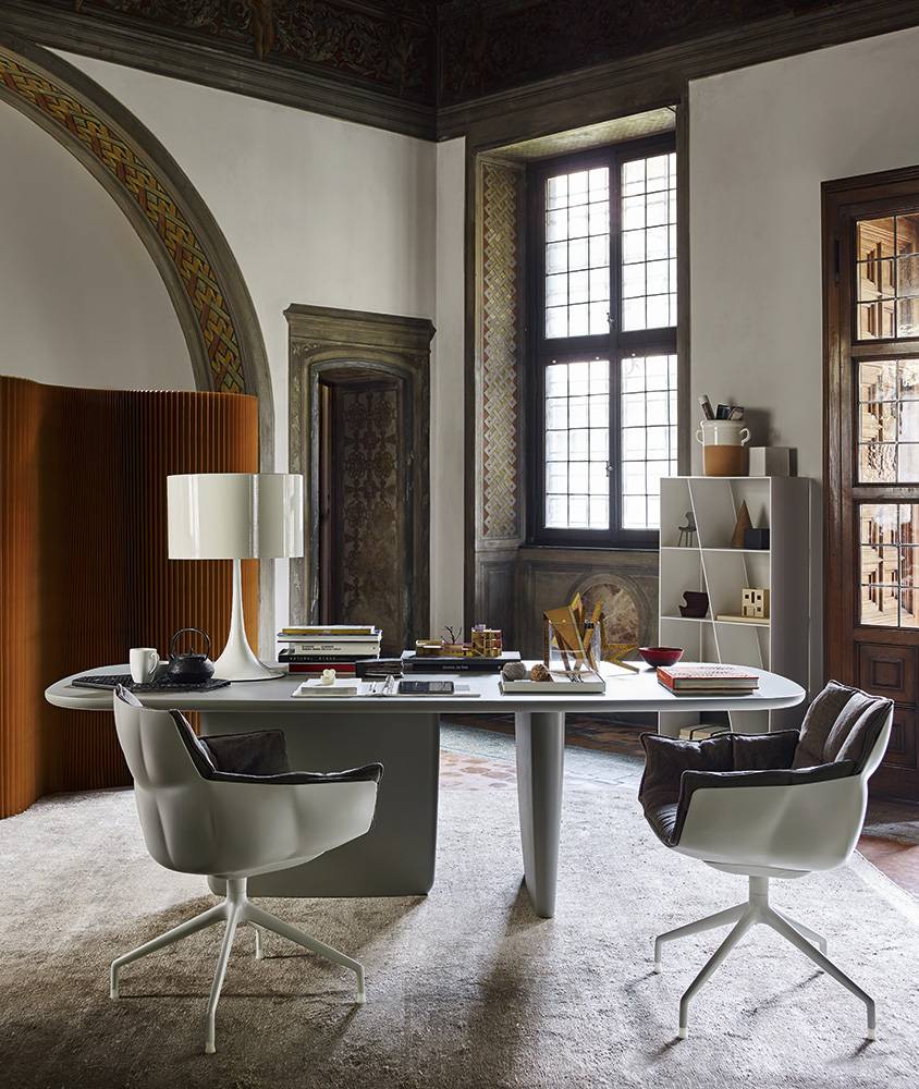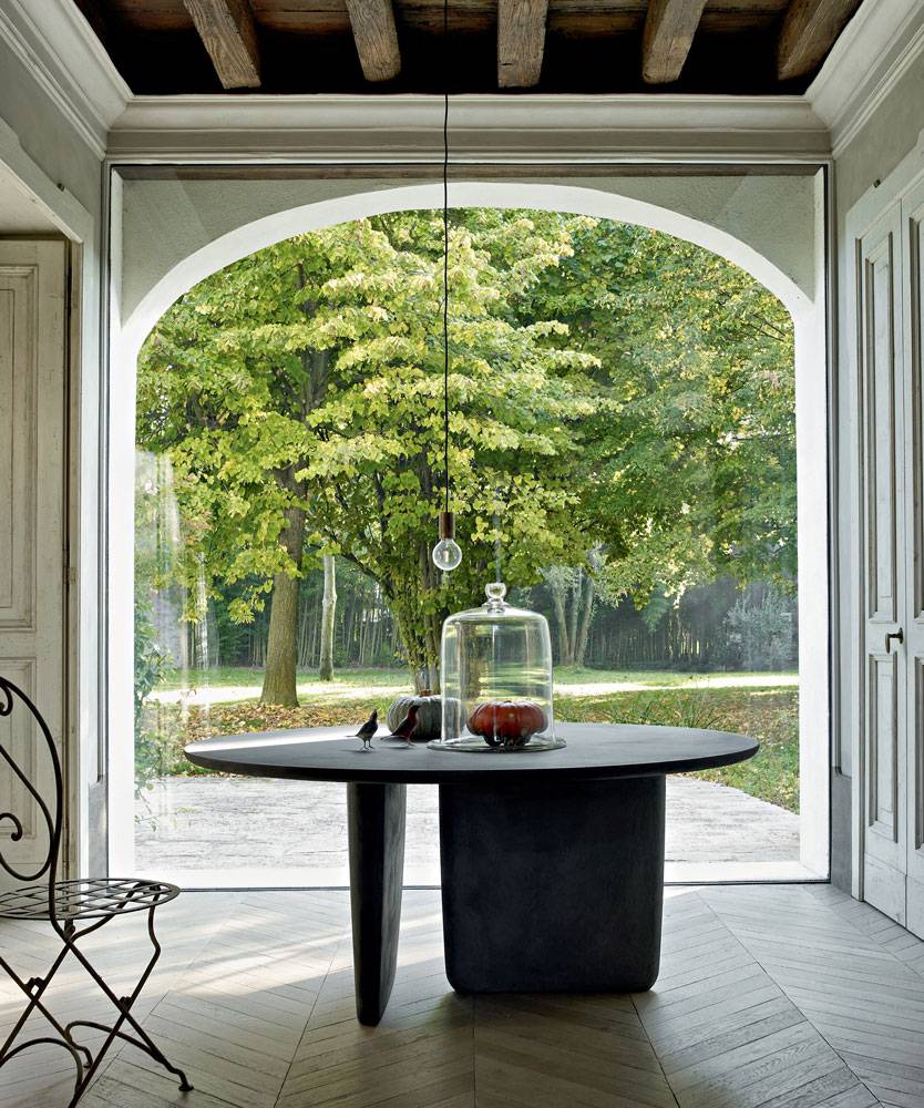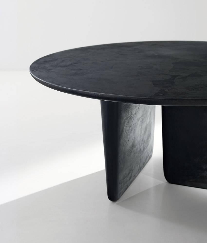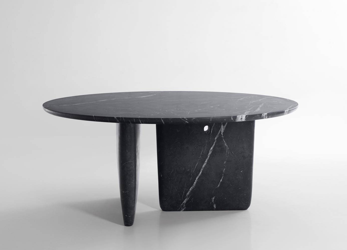 Едвард Барбер і Джей Осгербі представляють свій перший продукт для B&B Italia, круглий обідній стіл Tobi-Ishi, який надихнув дзен. Обидва дизайнери є великими шанувальниками японського мистецтва та культури. Назва та ідея столу пов’язані з гладкими каменями (тобі-іші), що використовуються для декоративних цілей у традиційних альпінаріях. Виступаючі стільниця і вертикальні трапецієподібні основи, розташовані ортогонально одна одній, дають життя суворій скульптурній фігурі, зображення якої постійно змінюється залежно від кута спостереження. Пошук балансу між формою та матеріалом виражений для столу Тобі-Іші у численних цементних матеріалах, лакових покриттях, мармурі та використанні дуба на низькому столі.Характеристики