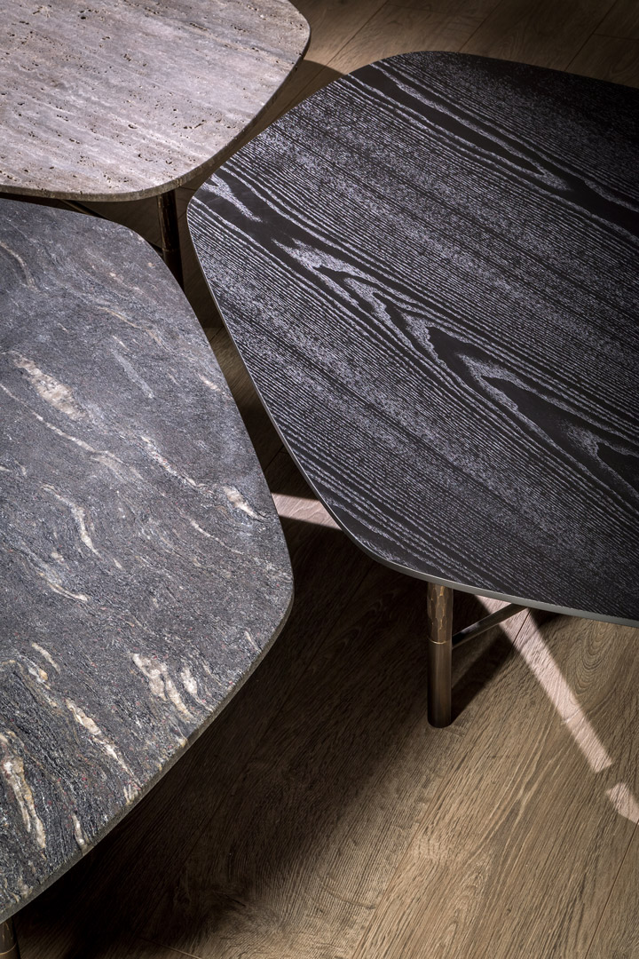 Шанхай, журнальний столик, що характеризується вертикальними елементами, із суцільного кованого залізного профілю, об’єднаного лінійним переплетенням біля основи. Верх неправильної форми може бути з каменю, мармуру або дерева. Складаючи столи з стільницями з різних матеріалів, у вітальні створюються цікаві рухи.Характеристики