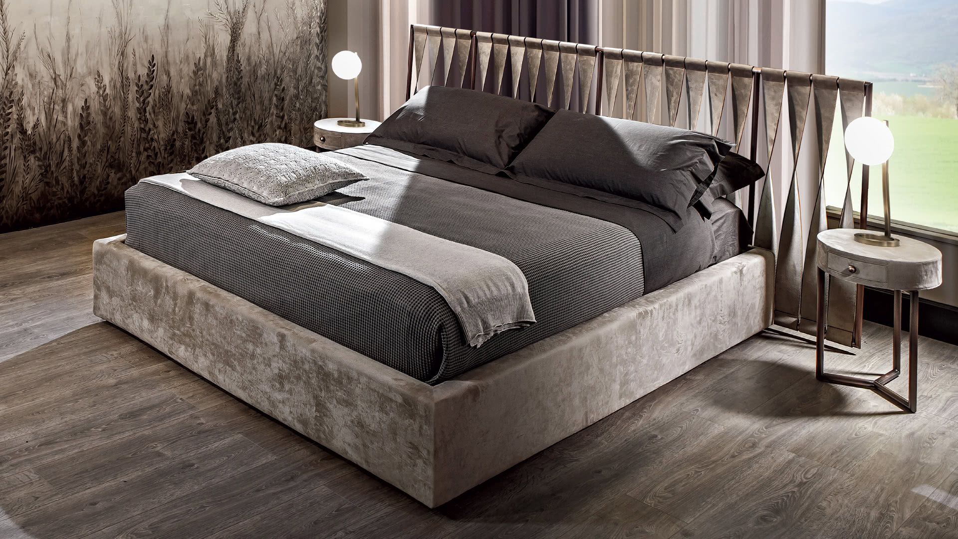 Тумбочка Teo зі старовинним смаком із структурою в квадратному металевому профілі. Кругла верхівка укомплектована висувним ящиком; доступні в обробці зі шкіри, нубуку, екошкіри або лаку. Внутрішня частина шухляди покрита тканиною.Характеристики