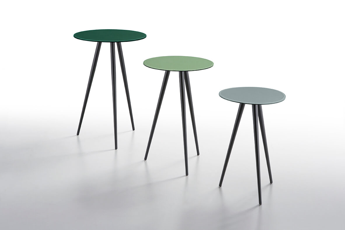 Журнальний столик з трьома ніжками з білої або чорної лакованої сталі, доступний у трьох різних розмірах: h45 см зверху ø30, h50 см верх ø35, h60 см верх ø40Характеристики