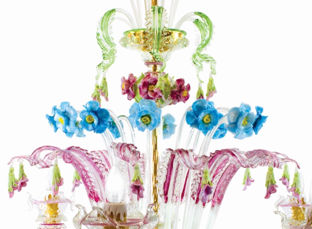 Люстра із муранського скла, прозора з різнокольоровими різнокольоровими прикрасами Розмір Г 157 см В 140 см; 50 кг Металеві LU - поліроване золото Муранське скло Прозорий + багатобарвний Цибулини 12 x E14 x LEDХарактеристики